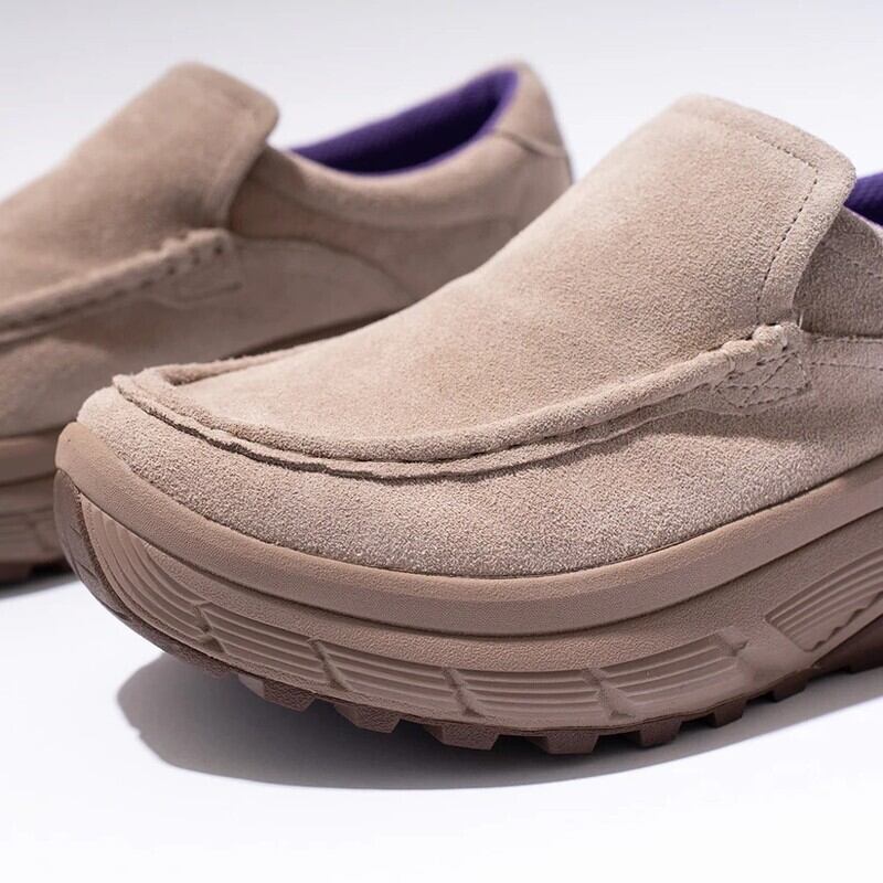 エラスティックをシュータン内側の1本にすることで、スリッポン特有の歩行時のズレを解消し、ユーザビリティを体現した。かぶせモカ、エッジの立ったシュータン、ライニングの配色や足入れのクッションなどの細部がストリートファッションを想起させ、そのルックスへの相性と、歩行性能を向上させるためにソールにはミッドソールの厚い、DECEMBERを採用。ミッドソール=LCS、アウトソール=XS TREKの素材配合により、クッション性とグリップ力を実現した一足。